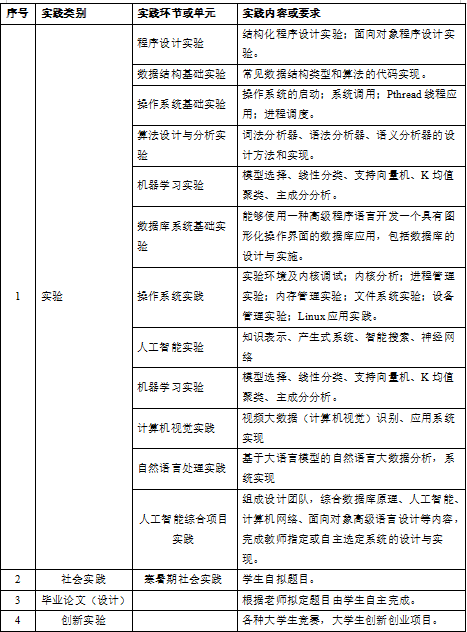 (2)分析和解决问题的能力:能够设计针对人工智能领域复杂工程问题的解决方案,设计满足特定需求的软硬件系统、算法或模型,并能够在设计过程中体现创新意识,考虑社会、健康、安全、法律、文化以及环境等因素。在校期间应完成六个系统或其功能模块的设计与实现:一个机器学习通用系统模块、一个计算机视觉处理系统、一个自然语言处理系统功能模块、一个大模型系统功能模块、一个智能机器人系统功能模块、一个移动应用系统。