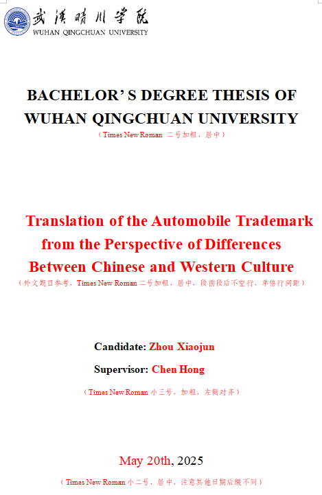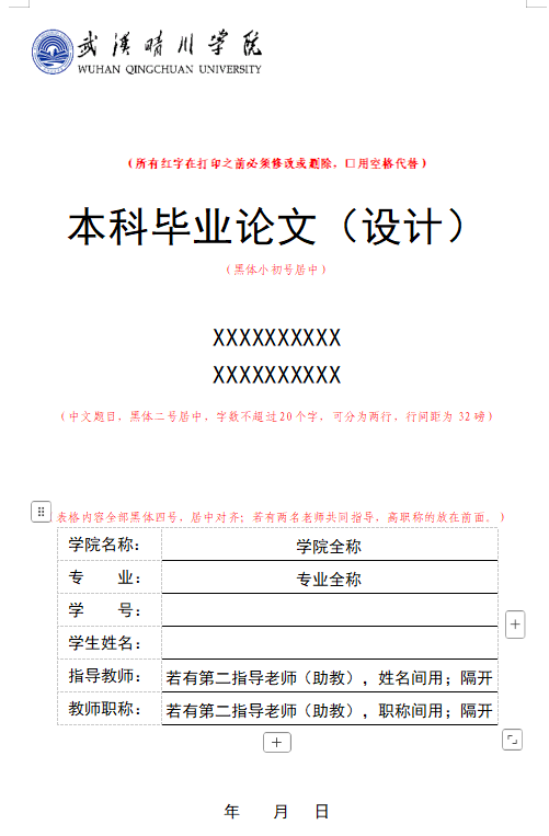 武汉晴川学院本科毕业论文(设计)书写印制规范