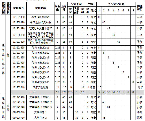 注:1.体育36学时计1学分,形势与政策32学时计1学分,其他理论教学16 学时记 1 学分;