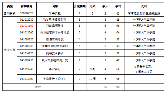 2.实验(实训)实践教学包括课内的实验(实训)实践以及集中实践实验教学环节:其中课内实验(实训)实践16学时记1学分;集中性实践实验环节1周计1学分,1学分按16 学时计;毕业实习(专业实习)、毕业论文(设计)等原则上每周计0.5学分;