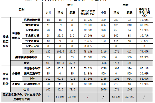 (三)学时学分统计表(不包括第二课堂学分)