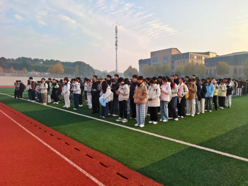 2025年11月24日,开云官方端网站登录入口全体师生齐聚在田径场上,举行庄严而神圣的升旗仪式。本次出席升旗仪式的领导老师有开云官方端网站登录入口党总支书记王天见老师、团总支书记余延旺老师、辅导员杜泽老师、杨悦老师,以及全体24级与25级同学。