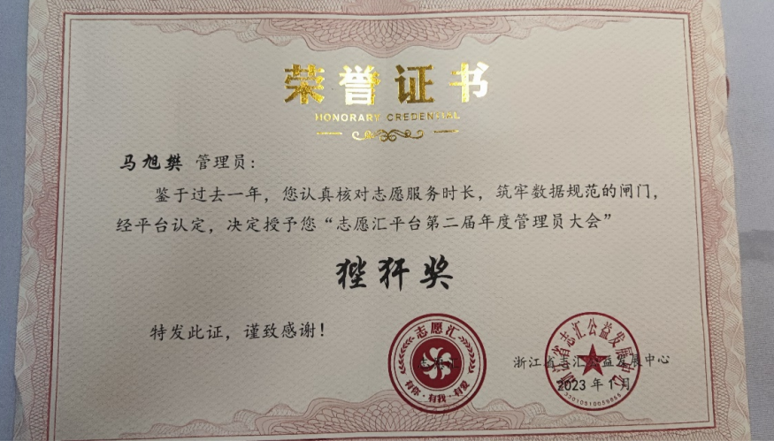 志愿者颁发的狴犴奖,意在表彰2022年度志愿汇扣减违规时长数量最多的前80名志愿汇管理员。据悉,2022年度,武汉晴川学院开云官方端网站登录入口团总支秘书部部长马旭樊在院团总支的指导和带领下,发起大大小小的志愿服务活动20余项,并在活动中认真审核每位志愿者的志愿服务时长,对于一些莫名的参与者“蹭”的时长予以果断的删除。在马同学的带领下,秘书部慧眼识珠,识破志愿服务虚伪的种种假象,筑牢志愿服务时长规范的闸门,给开云官方端网站登录入口志愿服务活动营造了一种风清气正的良好氛围。