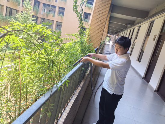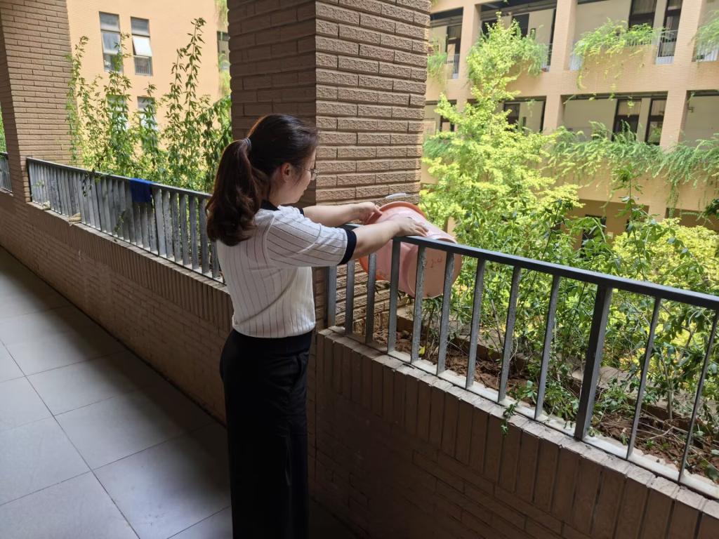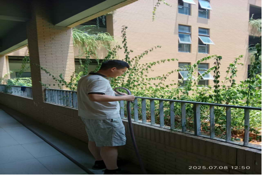 “党员干部就要走在前、干在先!”院长黄传河在劳动间隙表示,“校园环境是师生的‘第二课堂’,我们以‘党建+服务’模式带动全员参与,既能为学校节支创效,更能传递爱护环境的正能量。”汗水浸透了衣衫,但党员干部们始终坚守岗位,经过半小时的连续奋战,综1花坛的绿植全部完成浇灌,原本略显蔫萎的叶片重新舒展挺立。