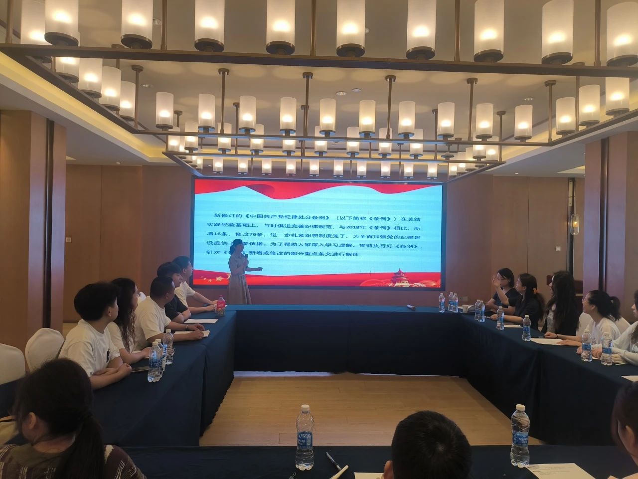 会议伊始,张倩同志对《条例》进行了解读。新修订的《中国共产党纪律处分条例》(以下简称《条例》)在总结实践经验基础上,与时俱进完善纪律规范,与2018年《条例》相比,新增16条,修改76条,进一步扎紧织密制度笼子,为全面加强党的纪律建设提供了重要依据。