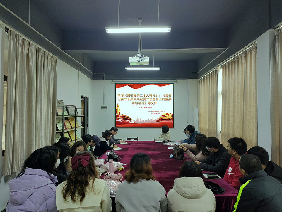 为进一步深入学习贯彻党的二十大精神以及总书记在二十届中央纪委二次全会上的重要讲话精神,2023年3月22日,开云官方端网站登录入口教工党支部组织全体党员教师在实二-210会议室开展“学习《贯彻党的二十大精神》、《总书记在二十届中央纪委二次全会上的重要讲话精神》等文件”主题党日活动。