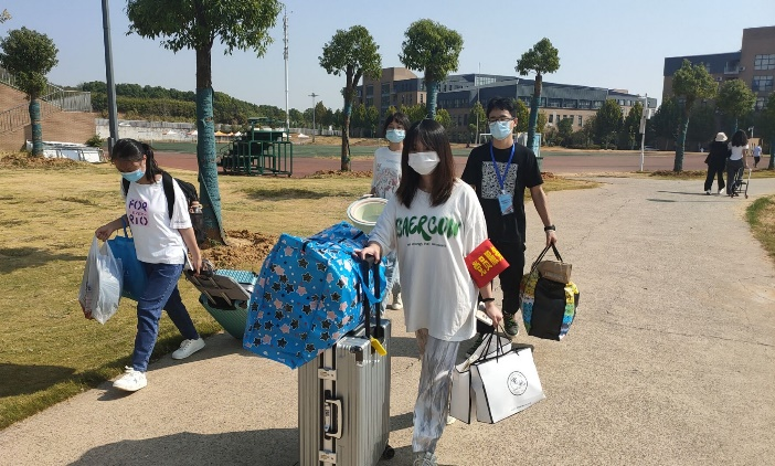9月17日及18日报道期间,第一党支部学生党员统一佩带袖章,将“党员红”化身“志愿红”。她们在烈日炎炎下却始终保持着热情,协同志愿者们一起,积极帮助新大一学生搬运行李,同时仔细回答新生所提出的问题,并向新生宣传反诈知识,提醒他们注意保护好自己的金钱,避免遭受损失。