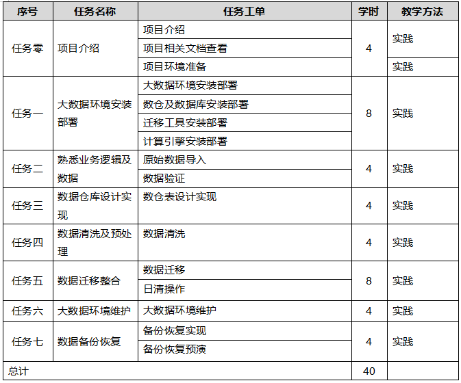 2.2 能够支撑大数据环境平台实现;能够实现大数据环境中数据仓库的建设;能够实现大数据清洗及预处理;能够实现大数据迁移整合;能够实现大数据的备份恢复功能;